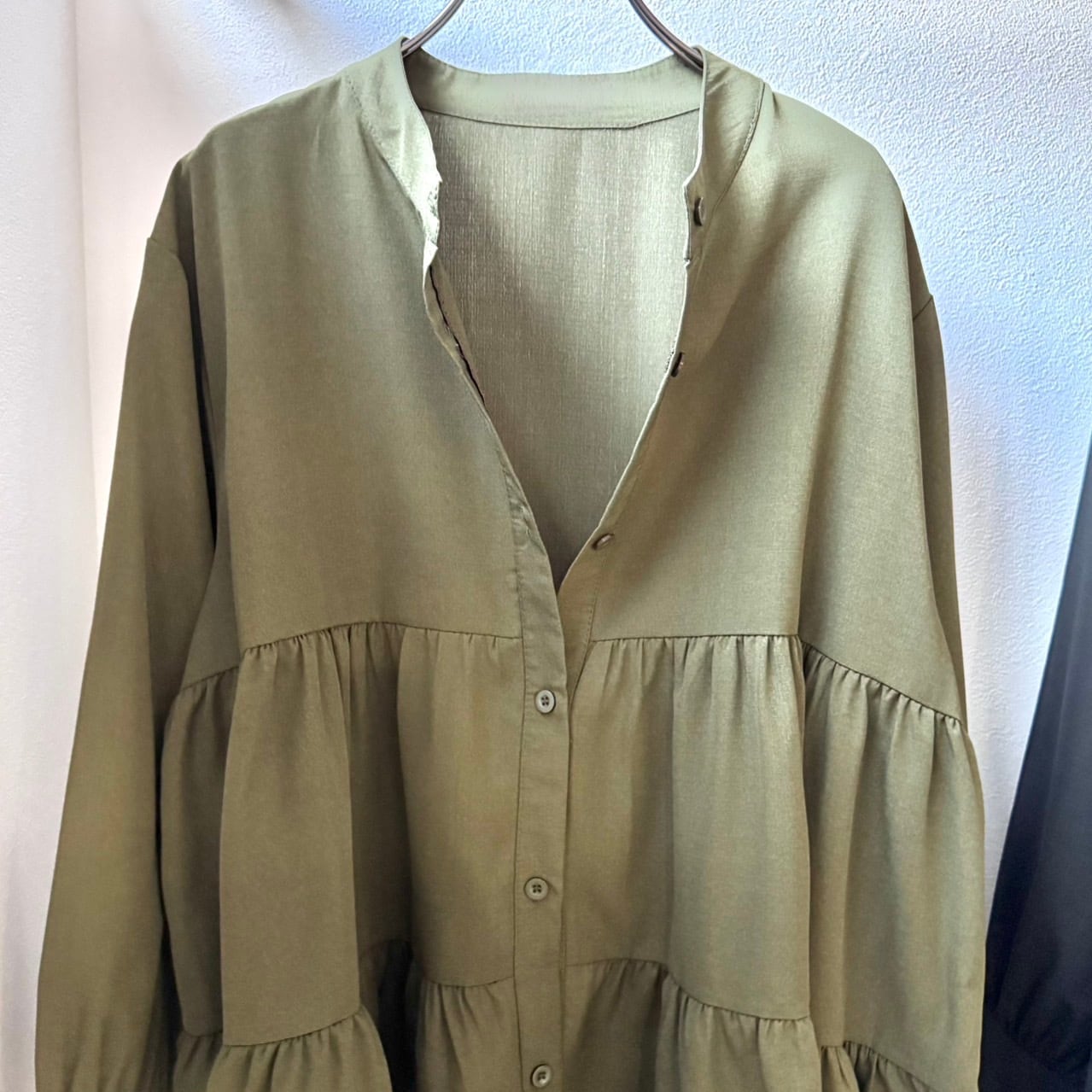 ノーカラーティアードブラウス/カーキ