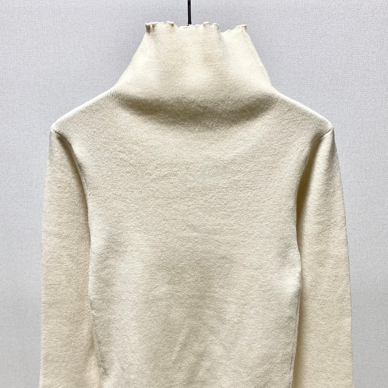 フレアスリットsleeveハイネックknit/ベージュアイボリー