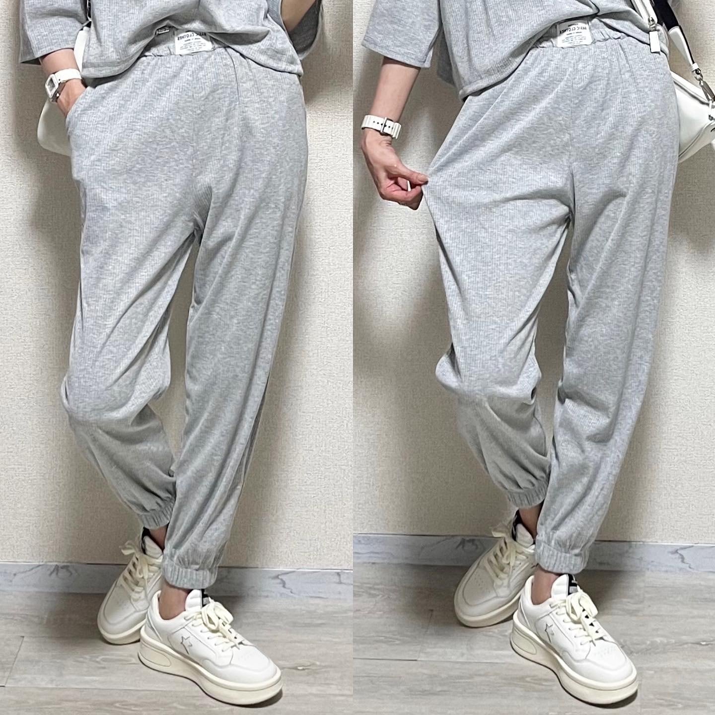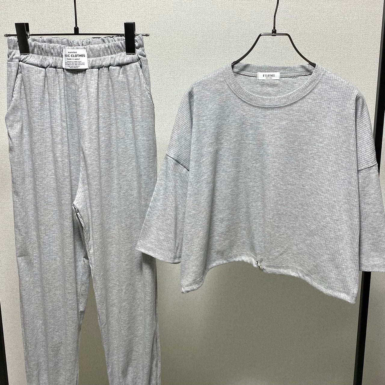 最終リブ五分袖コード付きshort tops×リブジョガーPT/セットアップ/グレー