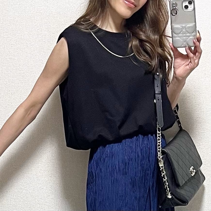 ▪️前身の首元にはスネークチェーンネックレスが付いているのでカジュアルスタイルもキレイめに仕上がります
