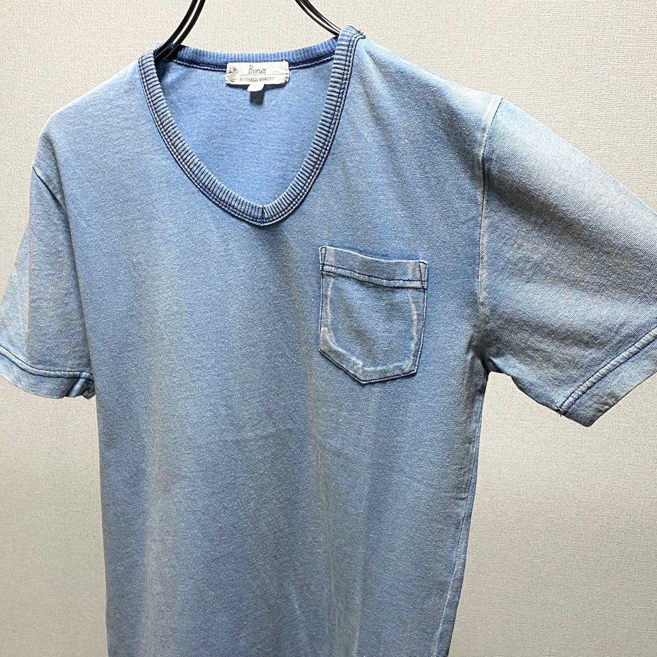 cottonデニム柔らかVネックTee