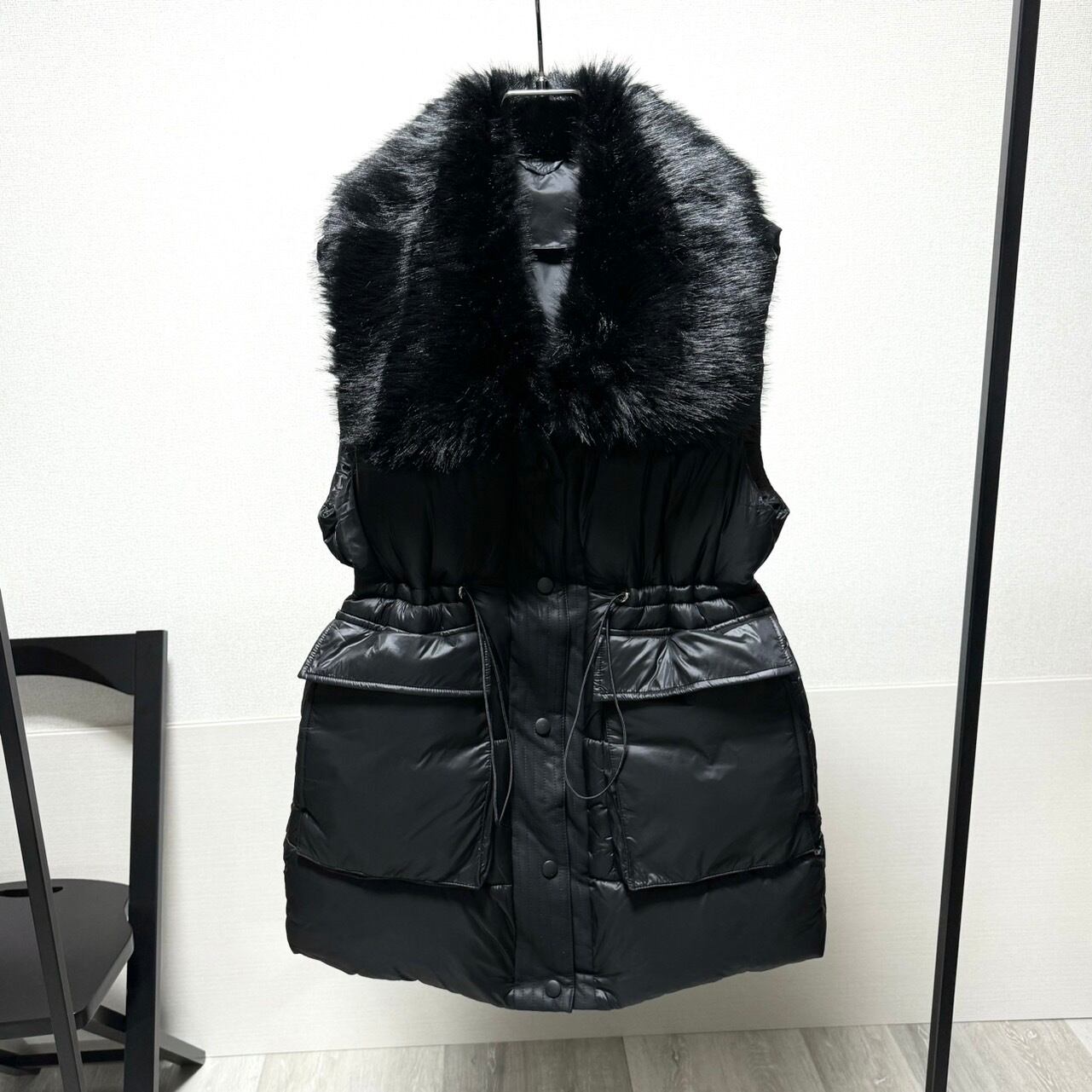 【残り1点】襟ファーウエストマーク中綿ボリュームベスト