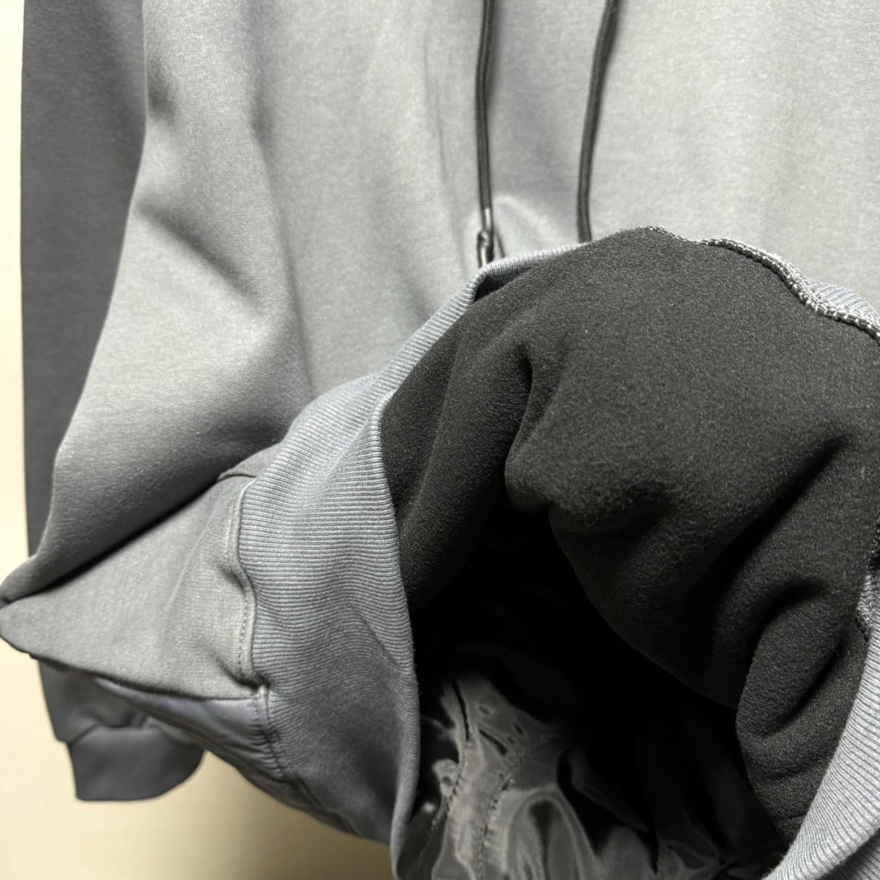 backキルティング切替え裏起毛BIGパーカー×ピンタックジョガーPT/セットアップ/チャコール