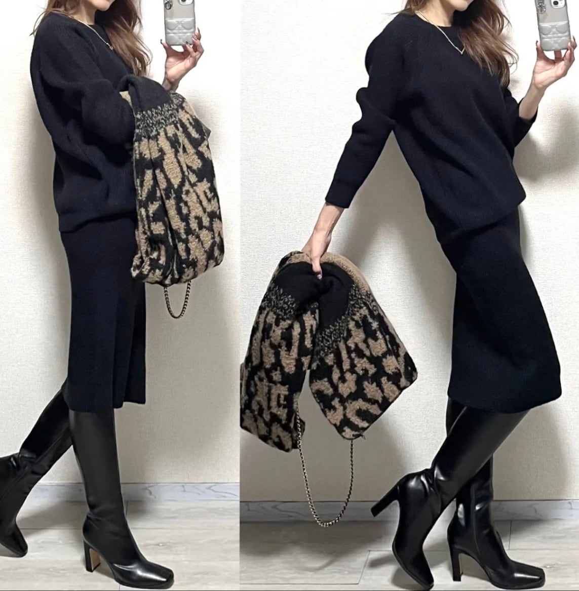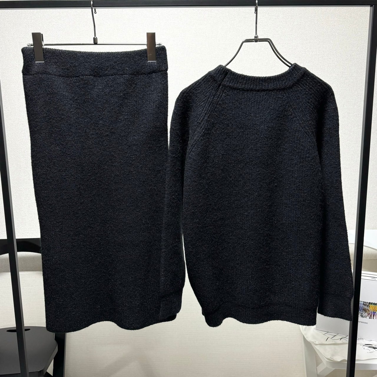 クルーネックknit×タイトknit SK/セットアップ/ブラック