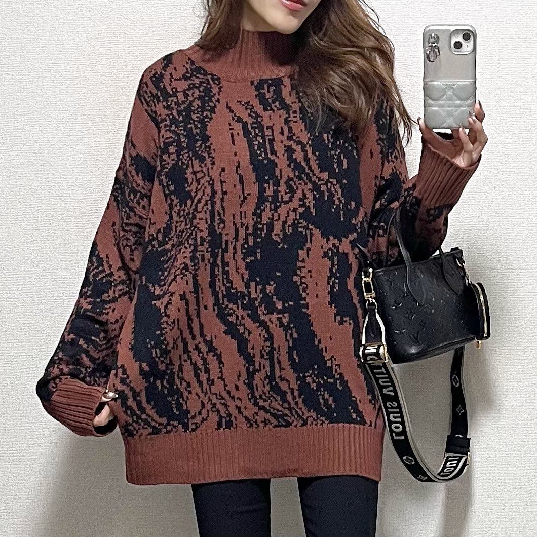 random art design 柔らかハイネックknit/ブラウン