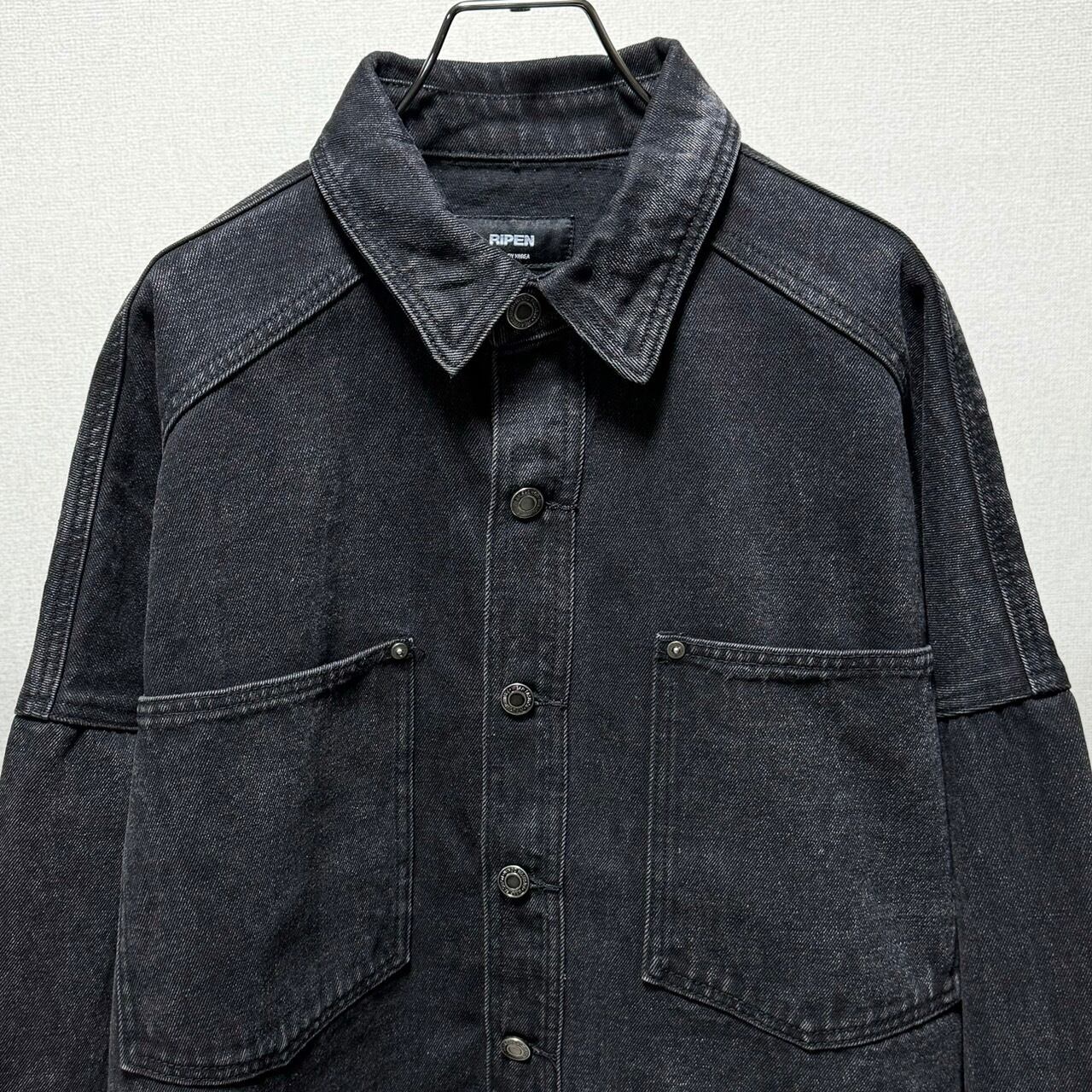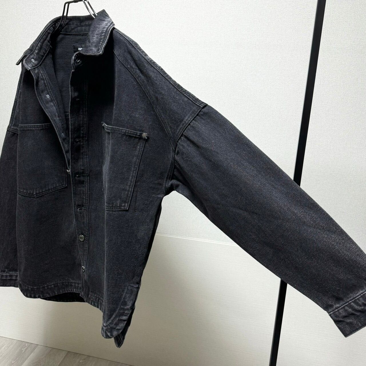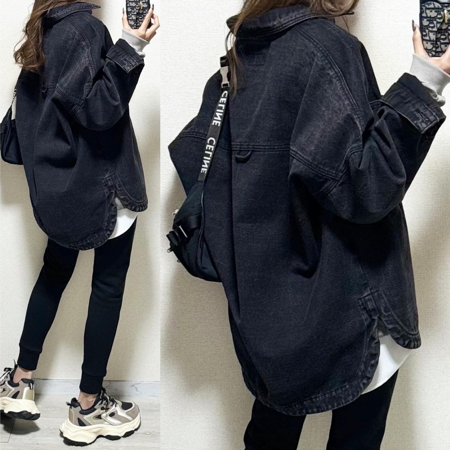 裾ラウンドヘムdouble chest pocketオーバーdenim JK/ブラック
