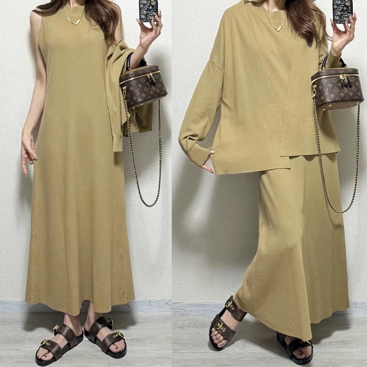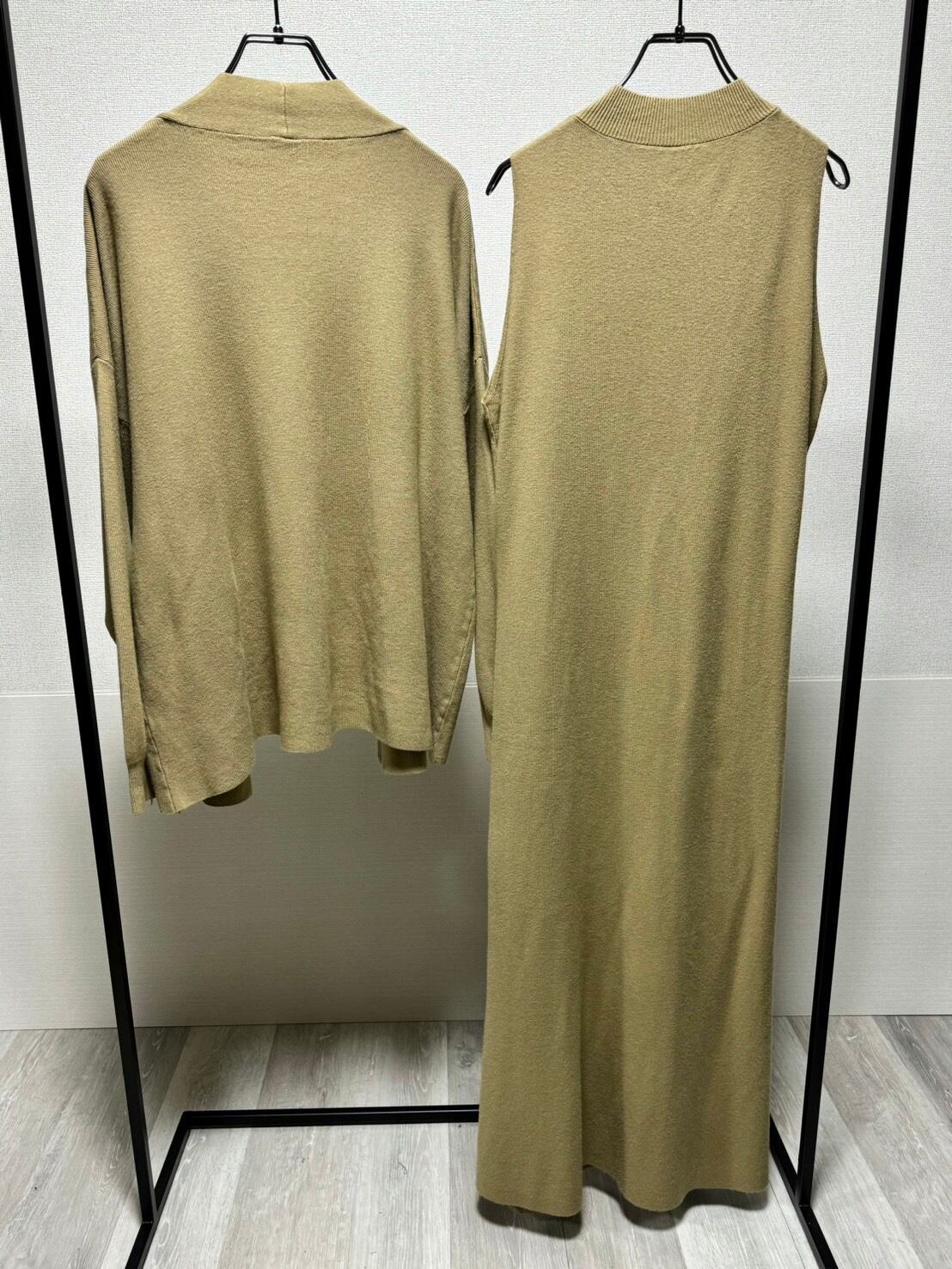 knitカーディガン×ロングknit OP/セットアップ/ベージュ