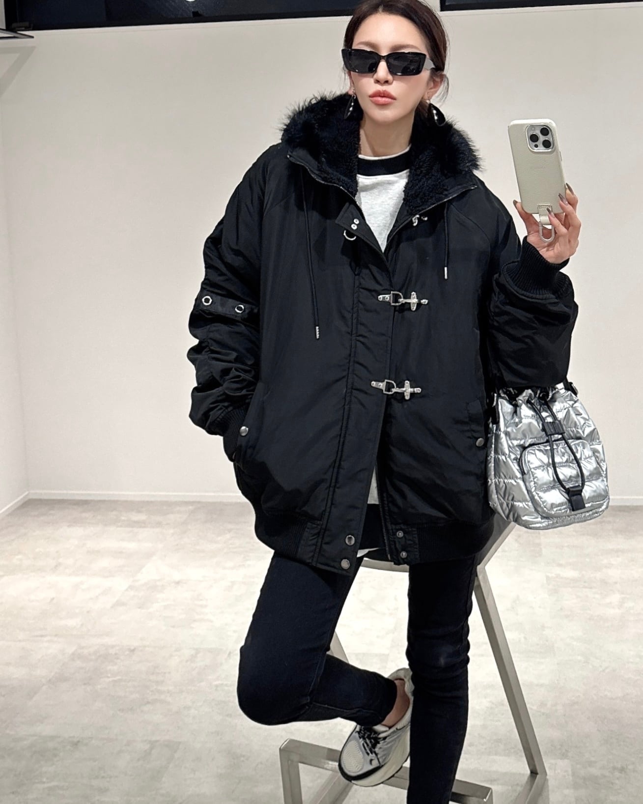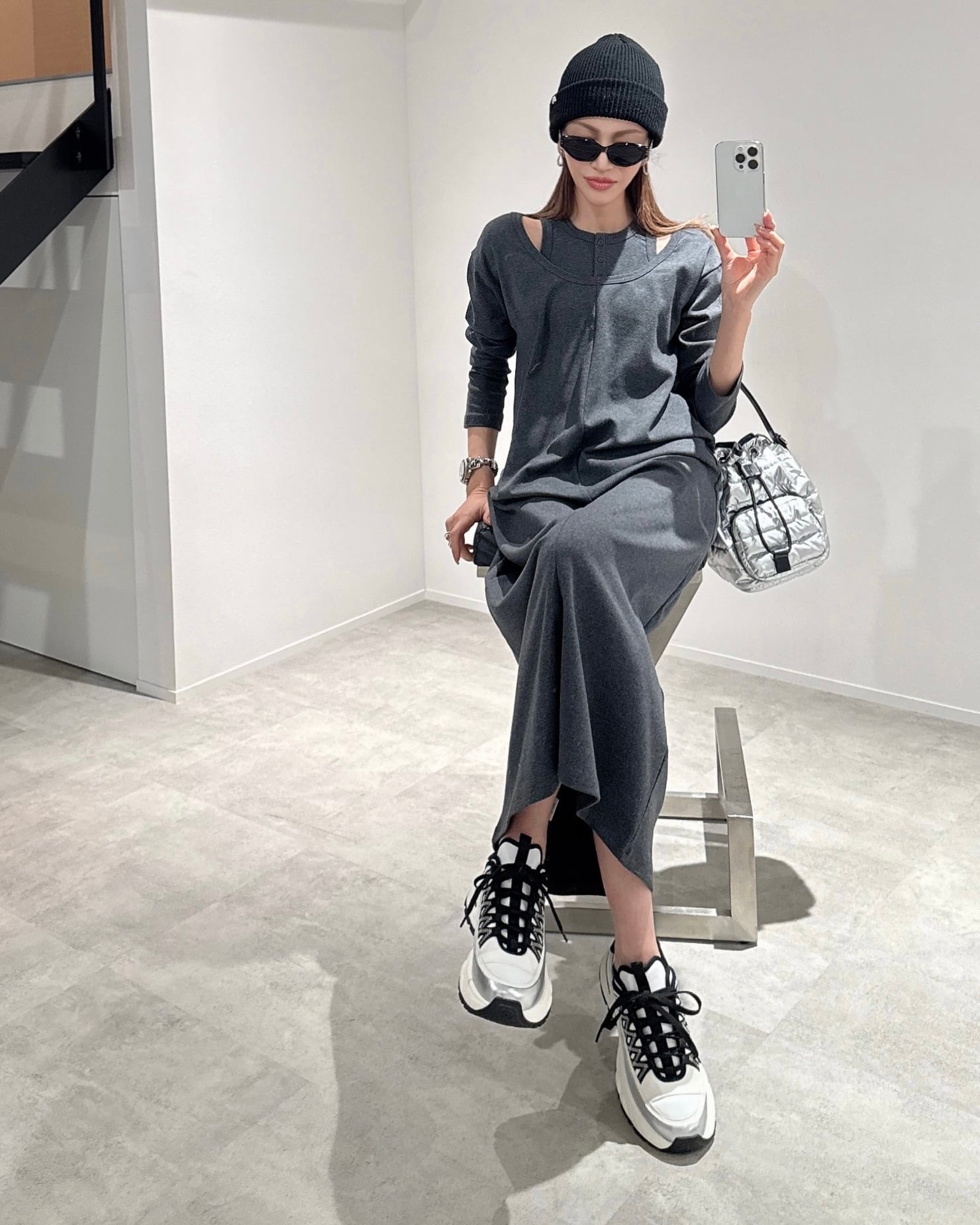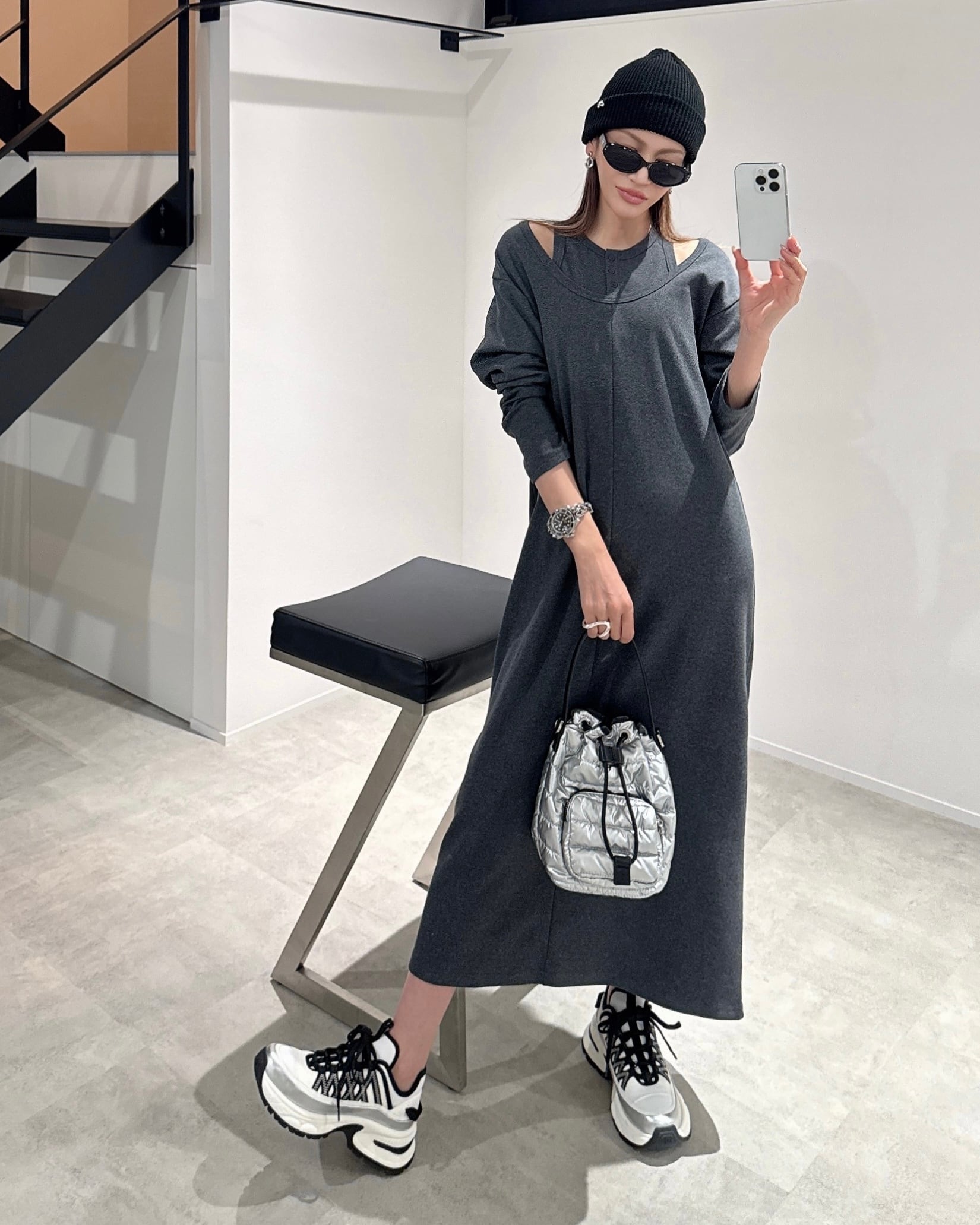 quilting plump bag/シルバー