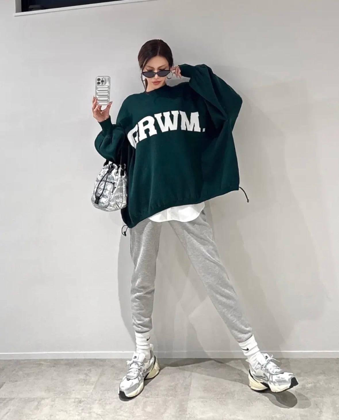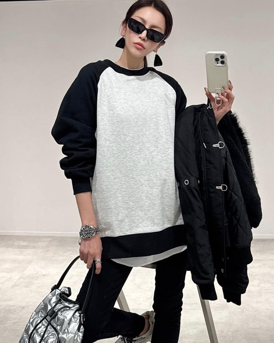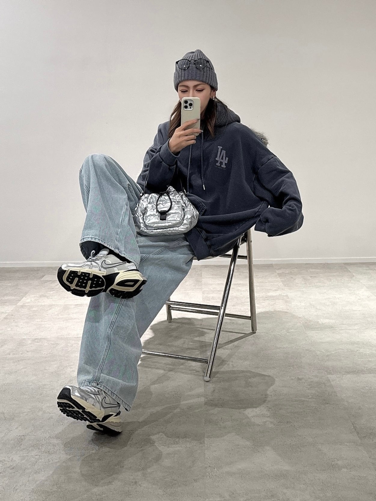 quilting plump bag/シルバー