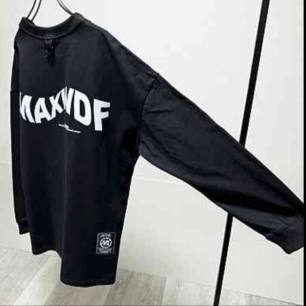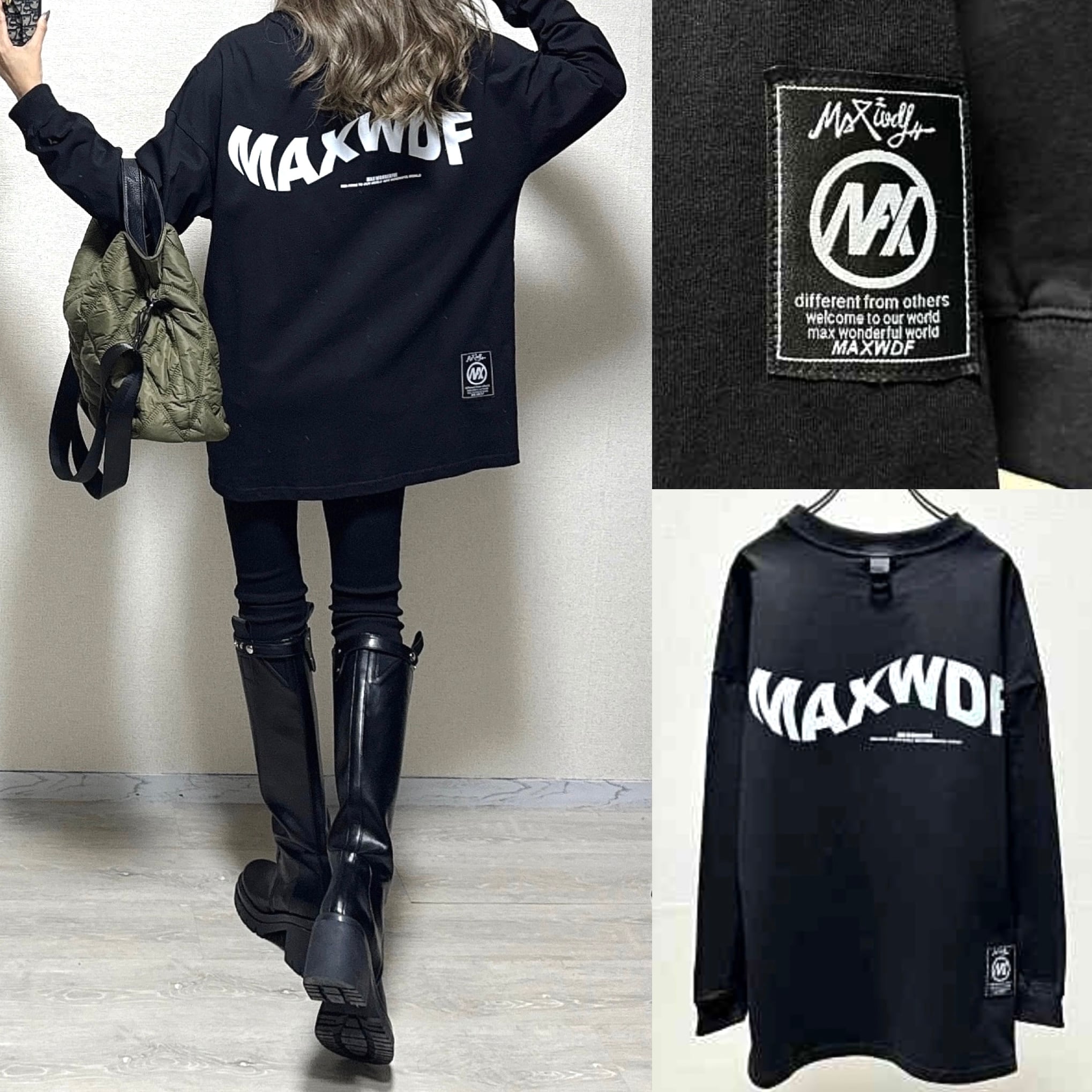 胸刺繍MAXWDF back PTオーバーロンT/ブラック