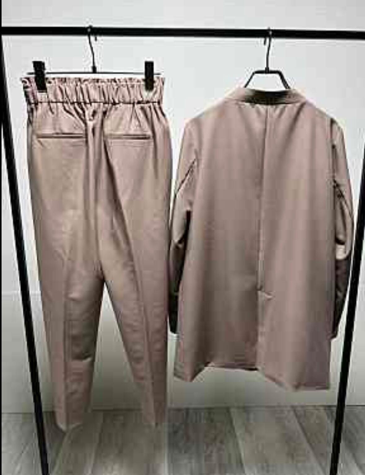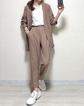 ノーカラーJK×テーパードPT/セットスーツ/モカ