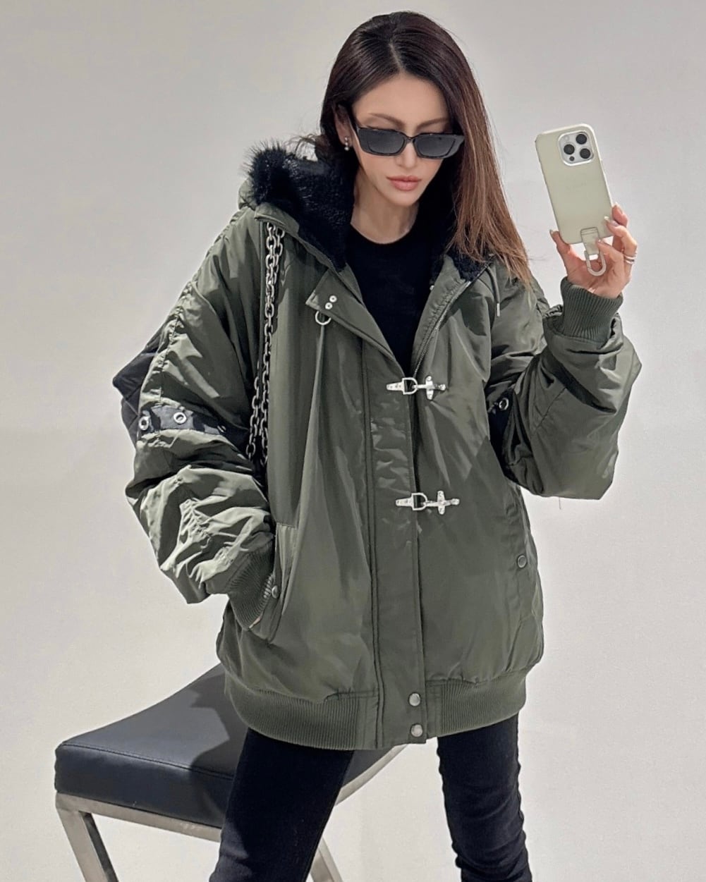 撥水加工バックルN-2B中綿ファーFDブルゾン/カーキ