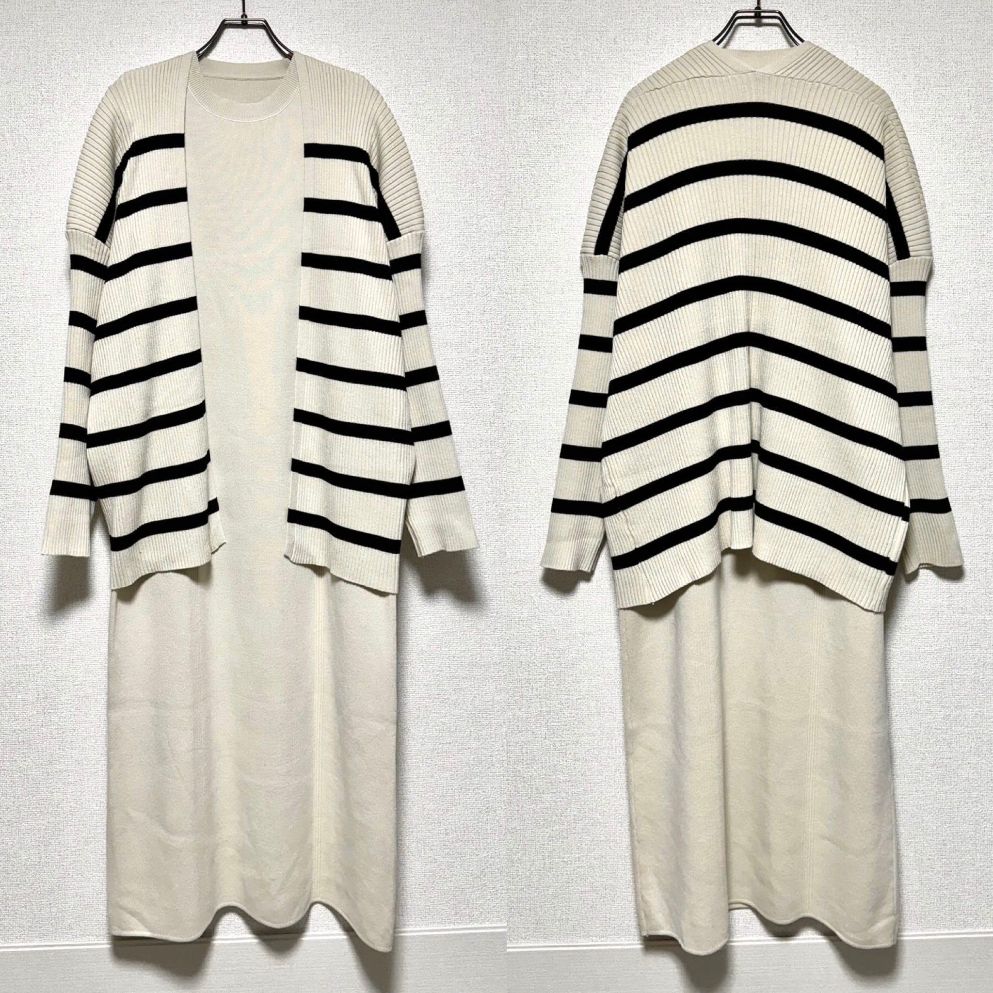 ボーダーknit CD×フレンチknit OP/セットアップ/エクリュ