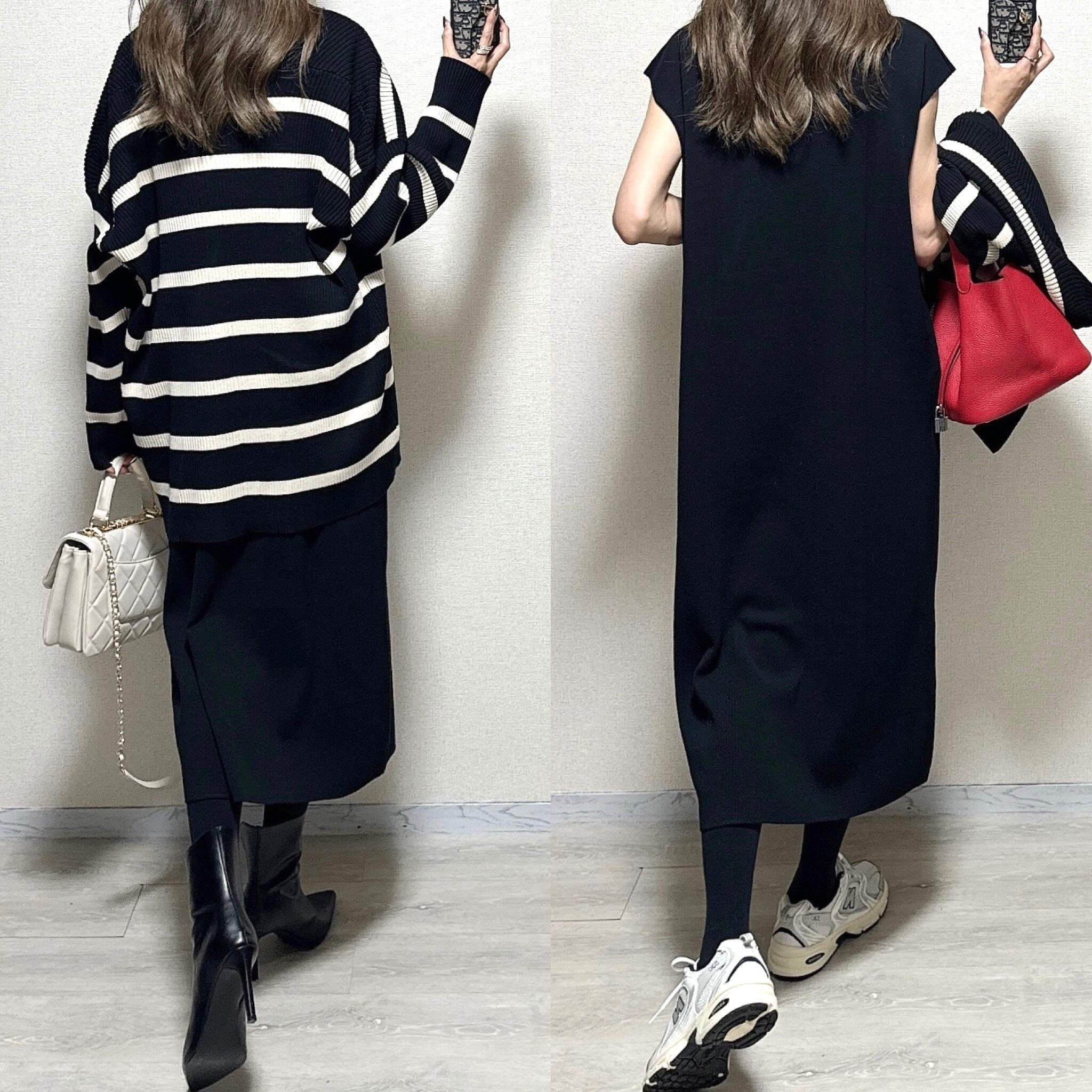 ボーダーknit CD×フレンチknit OP/セットアップ/ブラック
