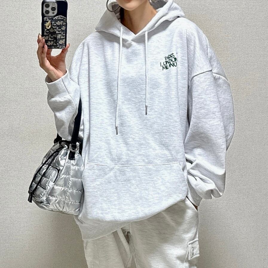 フードゆったりPARIS LONDON BIG PK/ライトグレー