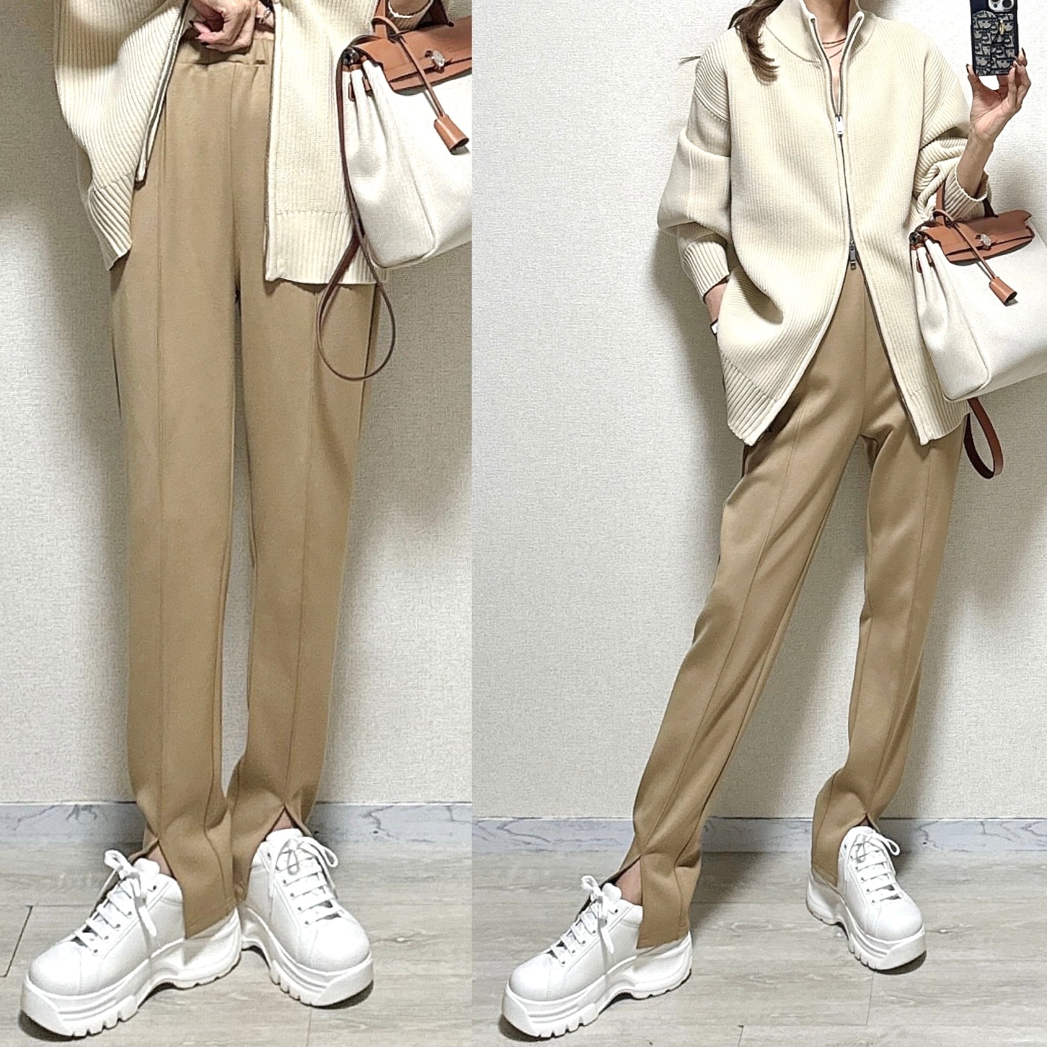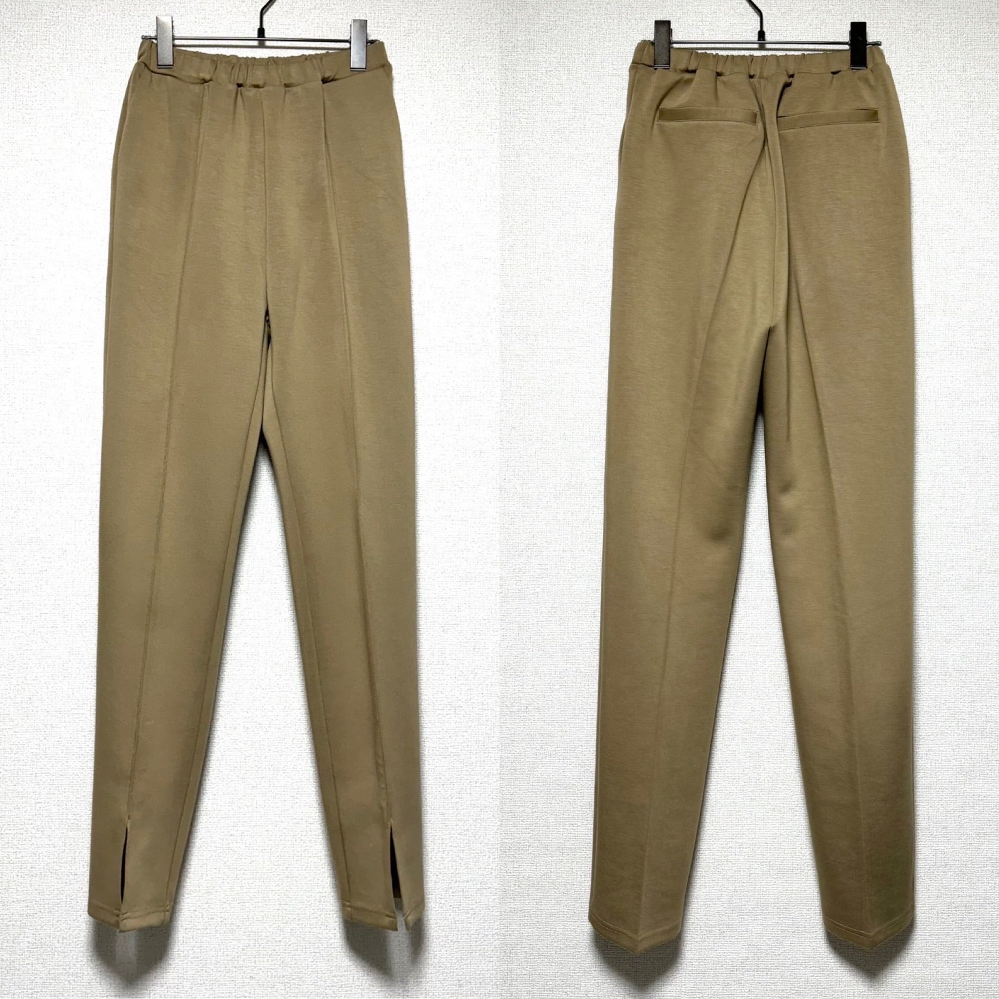 裾frontスリット肉厚ストレッチテーパードPT/モカベージュ
