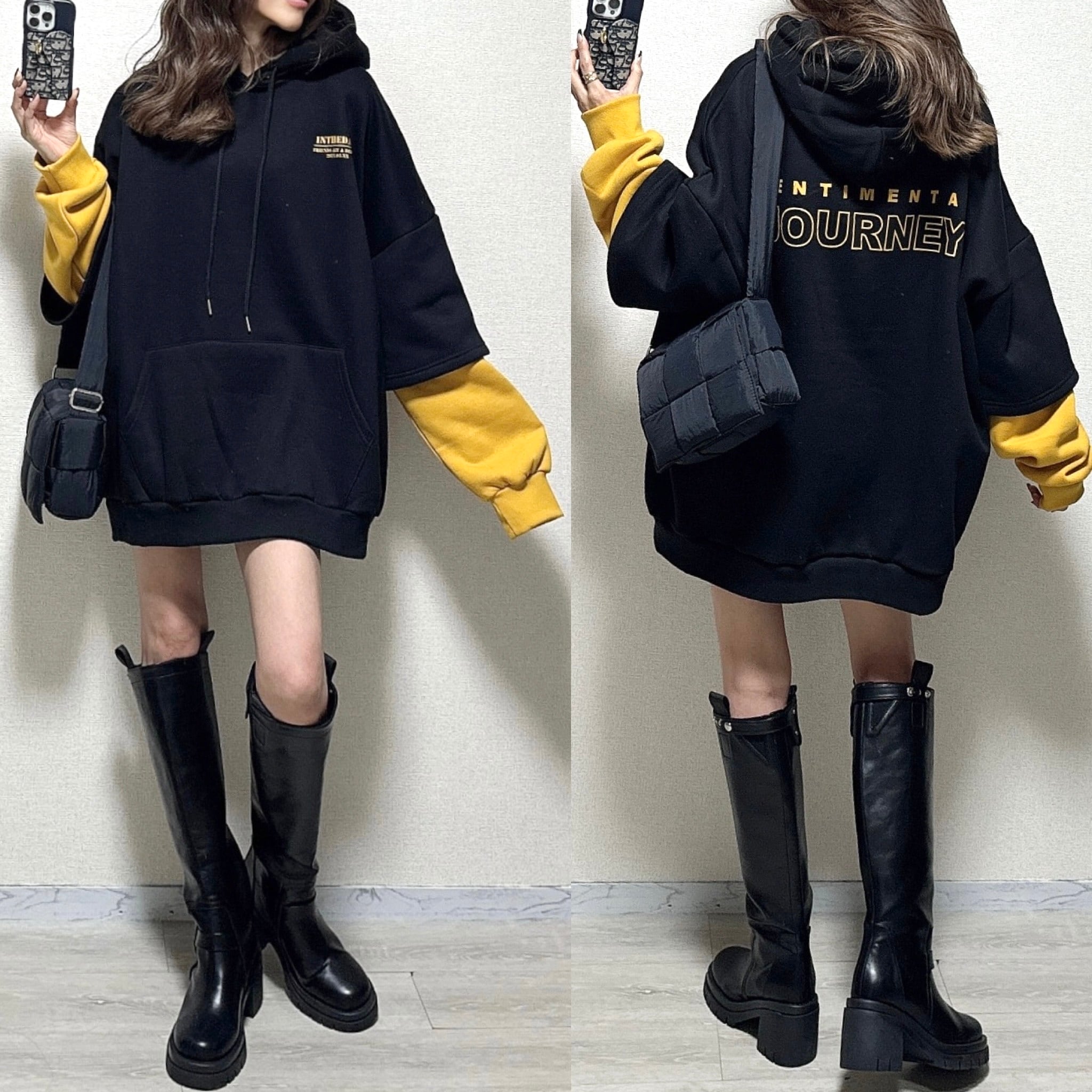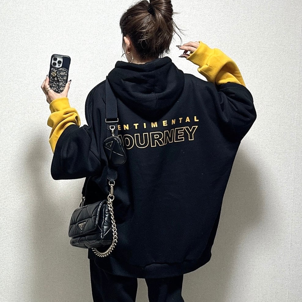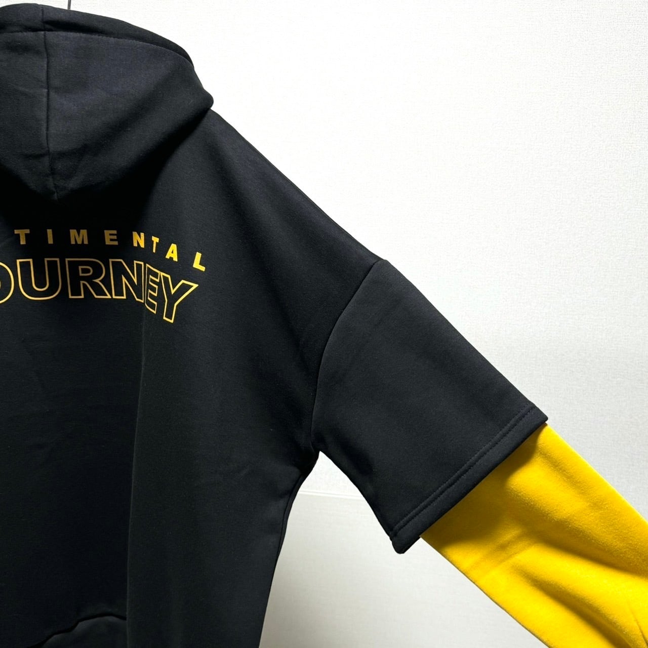 裏起毛レイヤード風JOURNEY BIGパーカー/ブラック