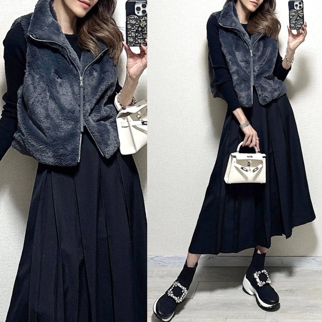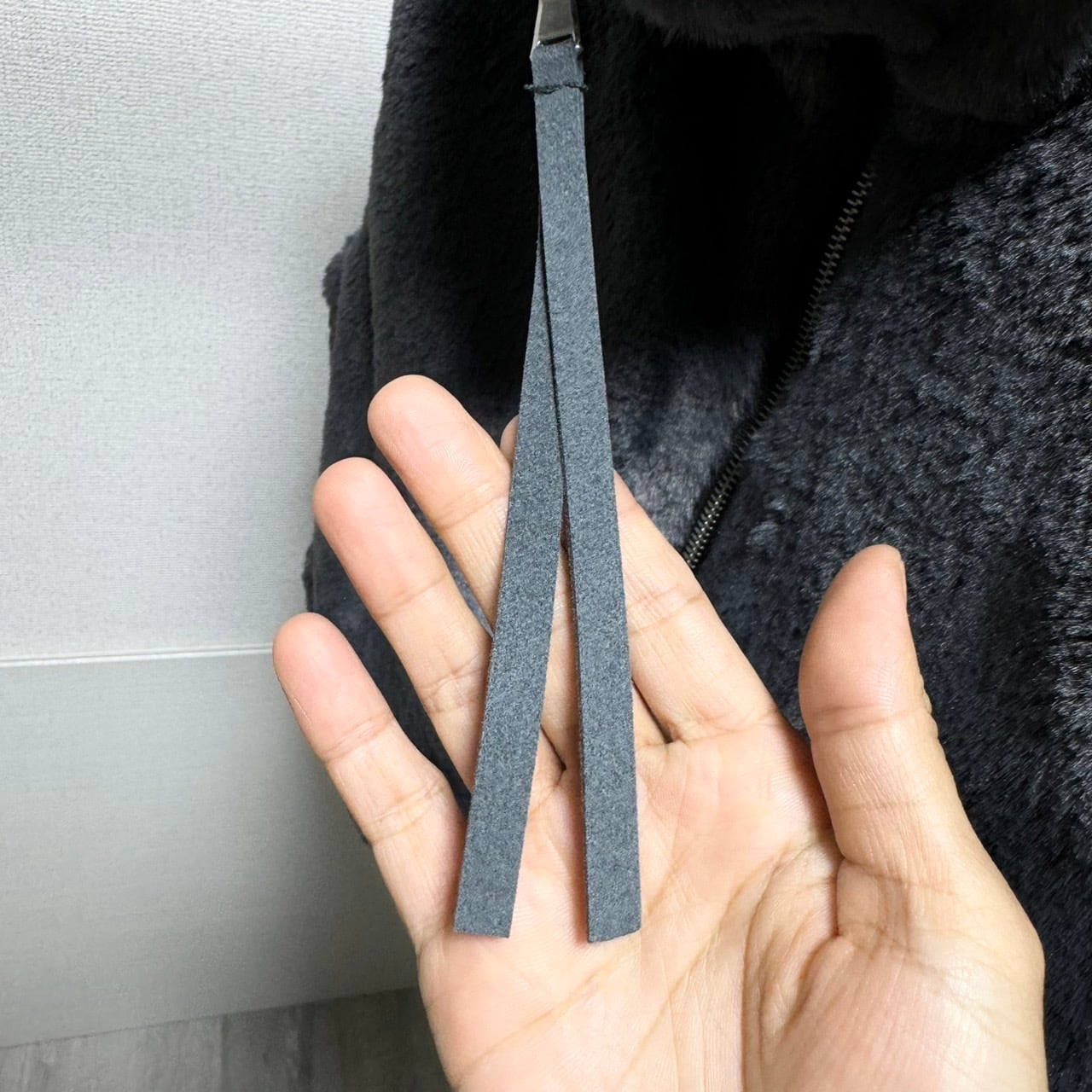 スタンドダブルzipラビット風ファーベスト/チャコール