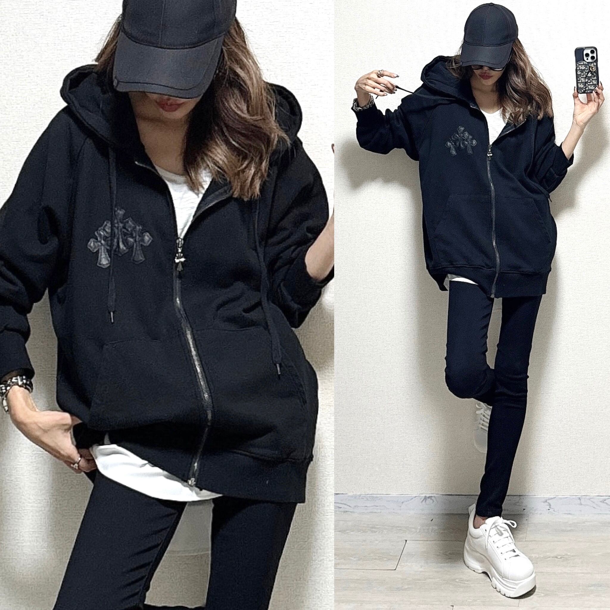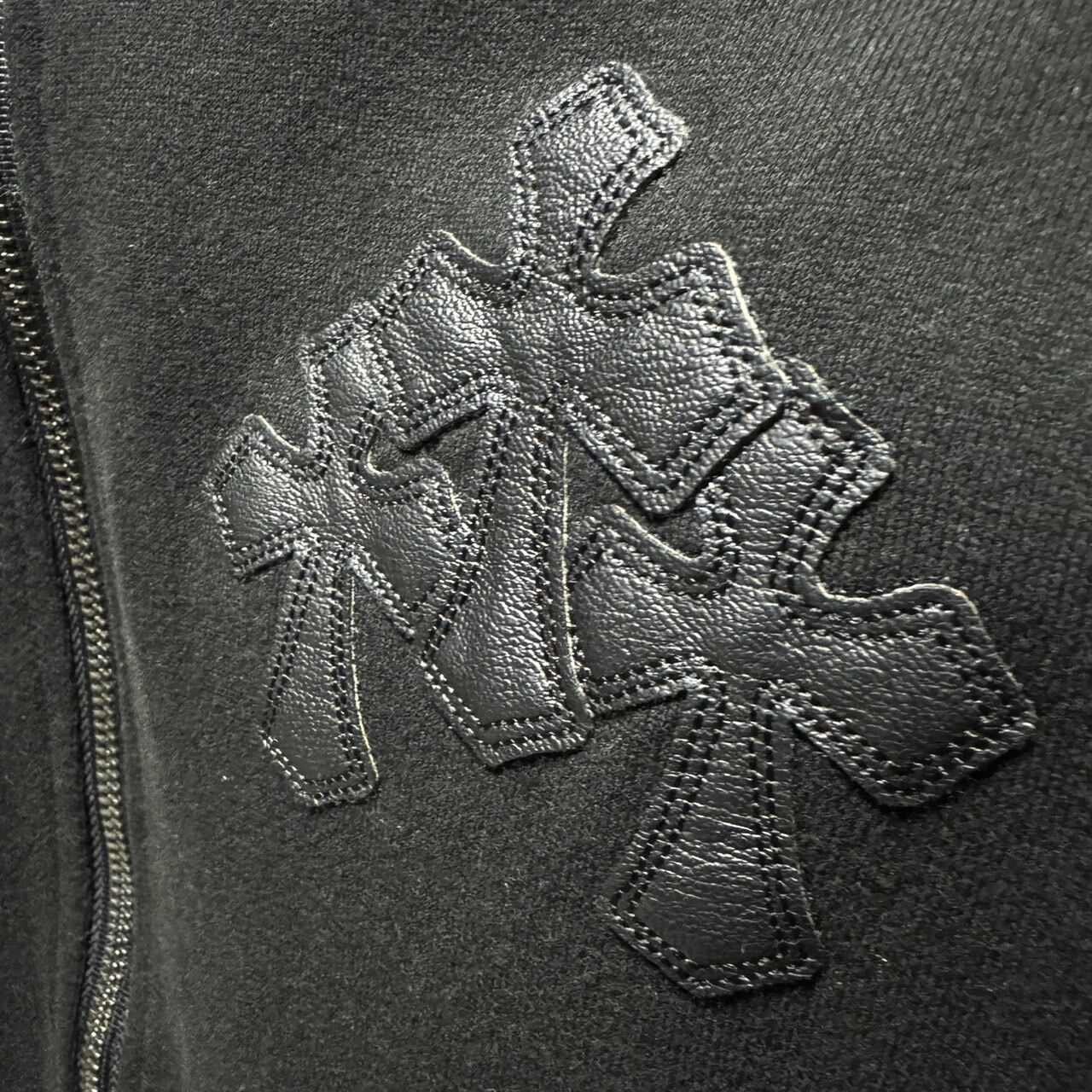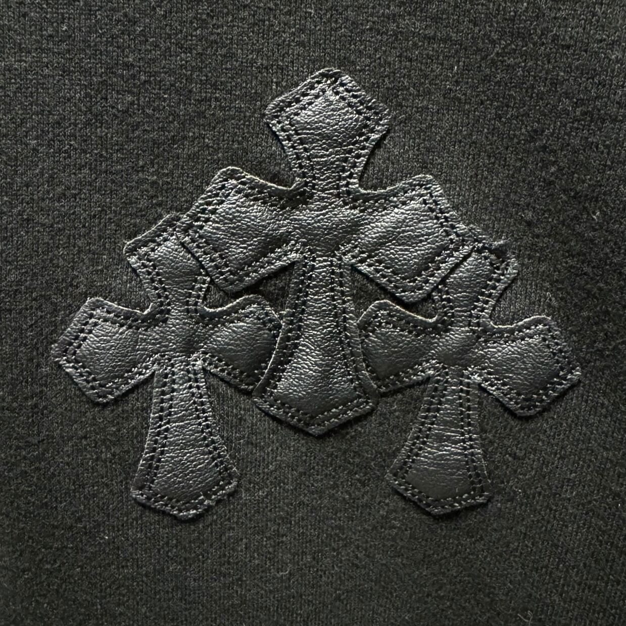 【 最終追加分 】cross zip and leather motif back plate hoodie/ブラック