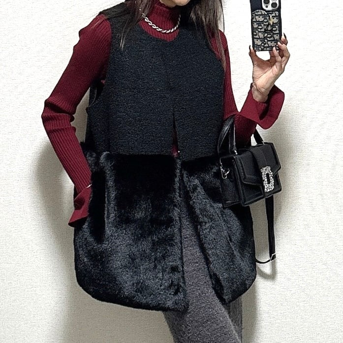 秋冬人気のボアとファーを掛け合わせたハーフベストです