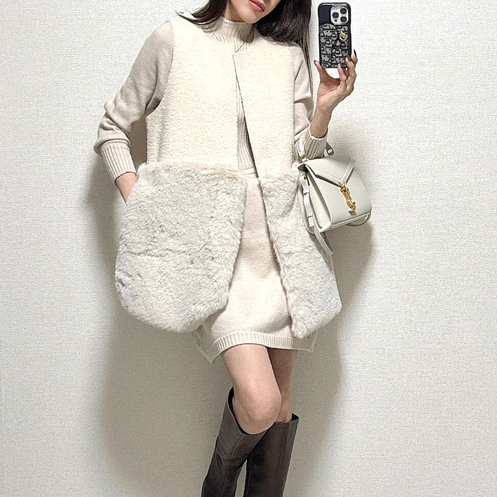 ワンピースの上からセーターやパーカーを重ね着するのもオススメです◎