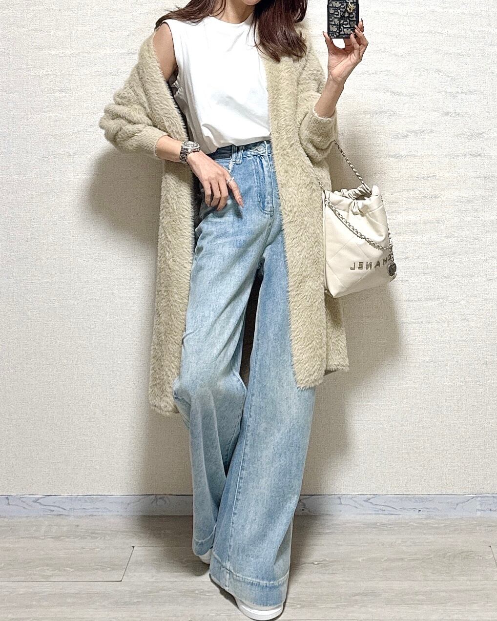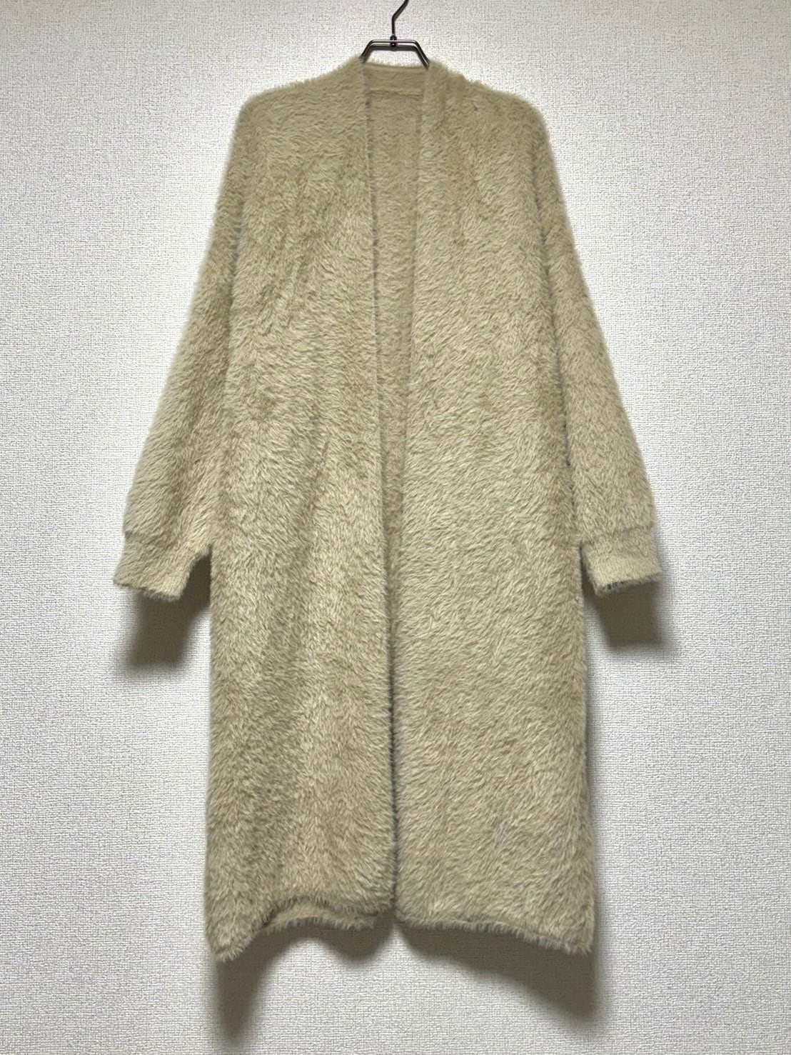 ふわりとしたシャギー素材が特徴のロングカーディガンです