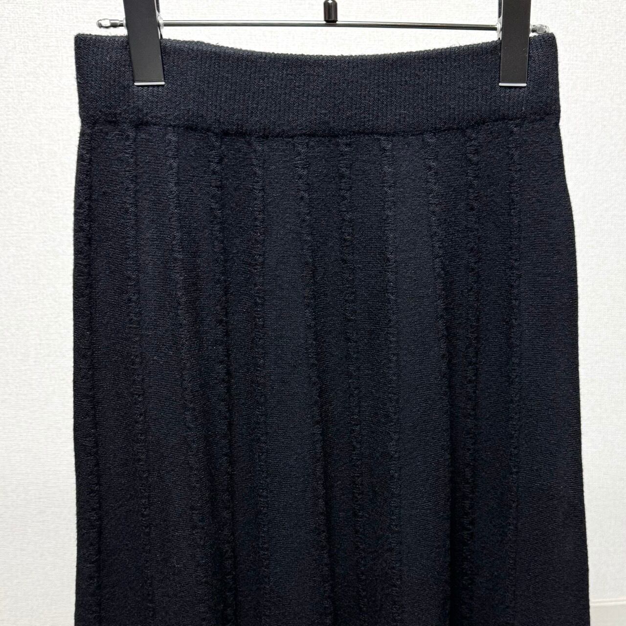 プリーツ風のポコポコとしたデザインのフレアロングニットスカートです