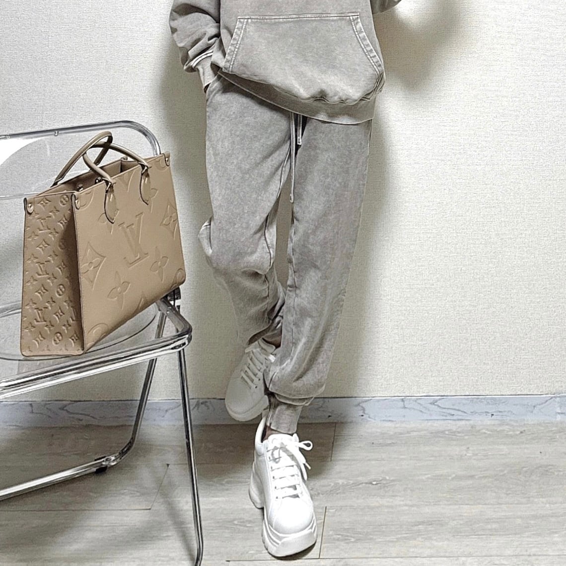※ ピグメント加工スウェットパーカーと上下セットアップで着ていただけますが、 上下のカラーニュアンスに誤差が出ます事をご理解下さいませ