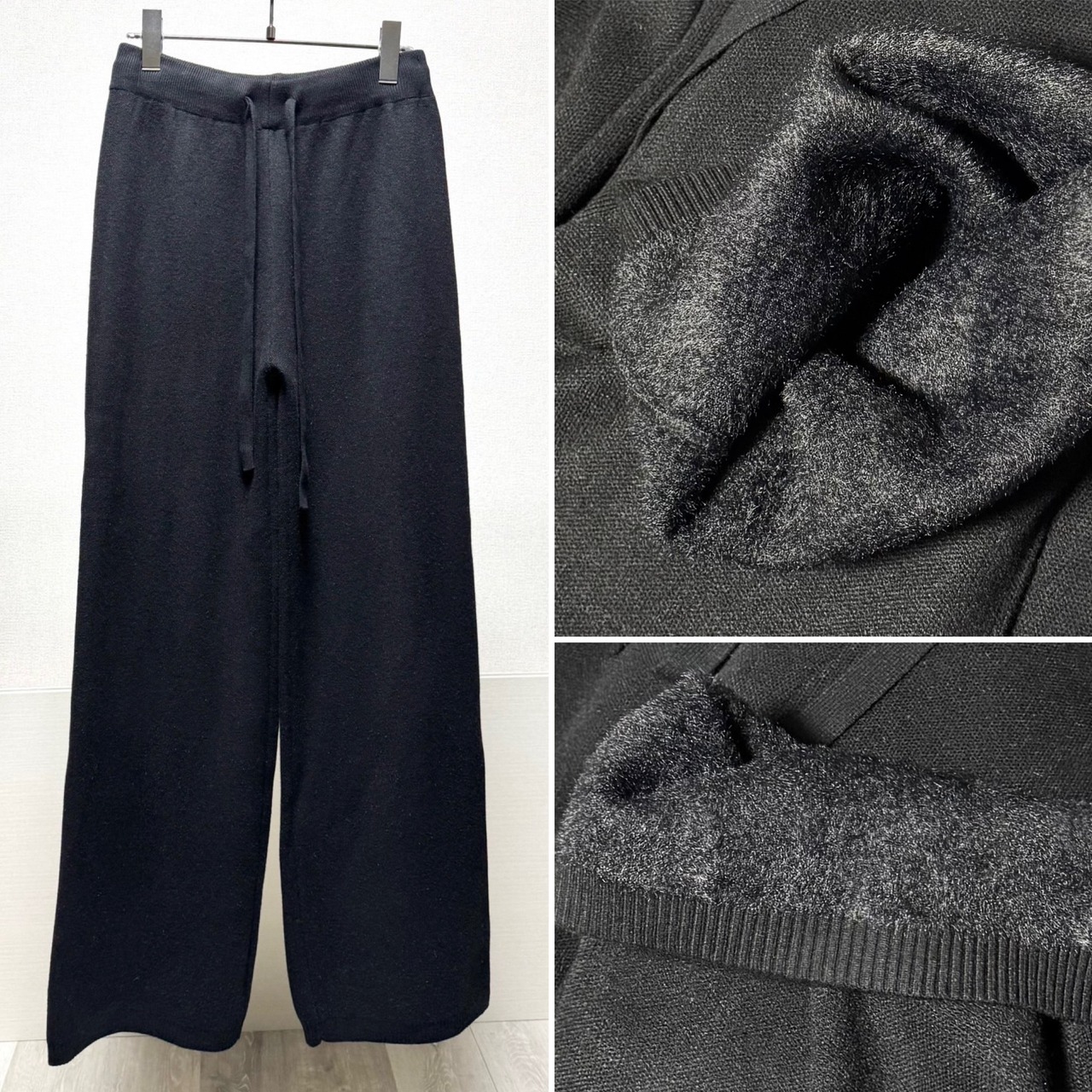 ストレートシルエットが綺麗なシンプルデザイン裏起毛ニットワイドパンツです