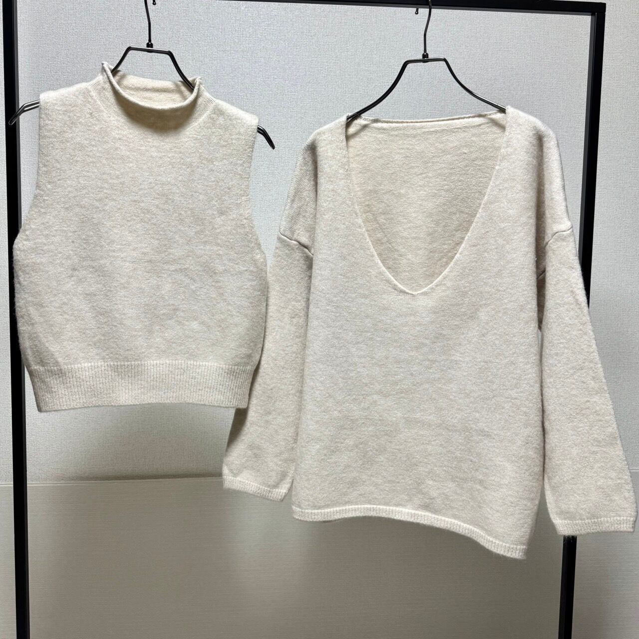 ボトルネックknit TP×ディープVネックknit /アンサンブル/アイボリーベージュ