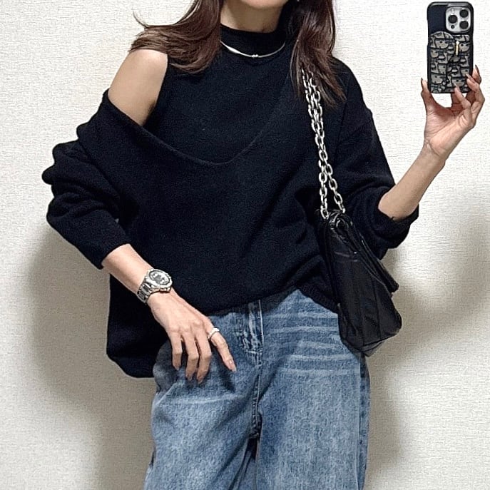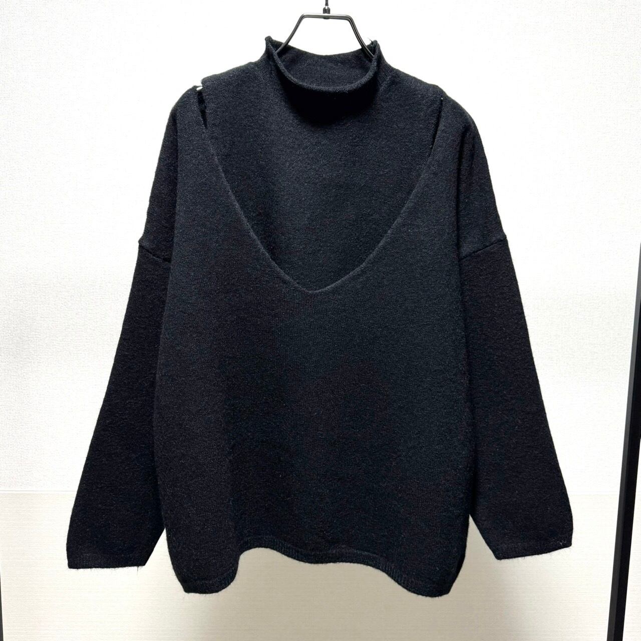 ボトルネックknit TP×ディープVネックknit /アンサンブル/ブラック