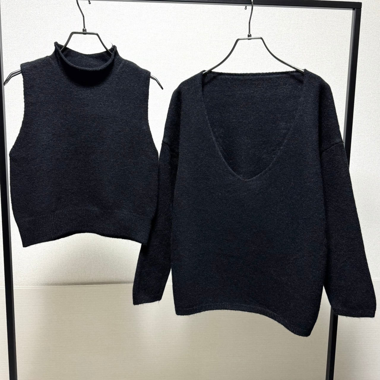 【 最終追加分 】ボトルネックknit TP×ディープVネックknit /アンサンブル/ブラック